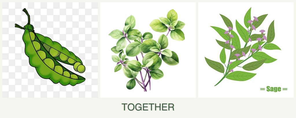 - Pest Control: Oregano and sage have aromatic oils that repel certain pests, which can help protect peas.