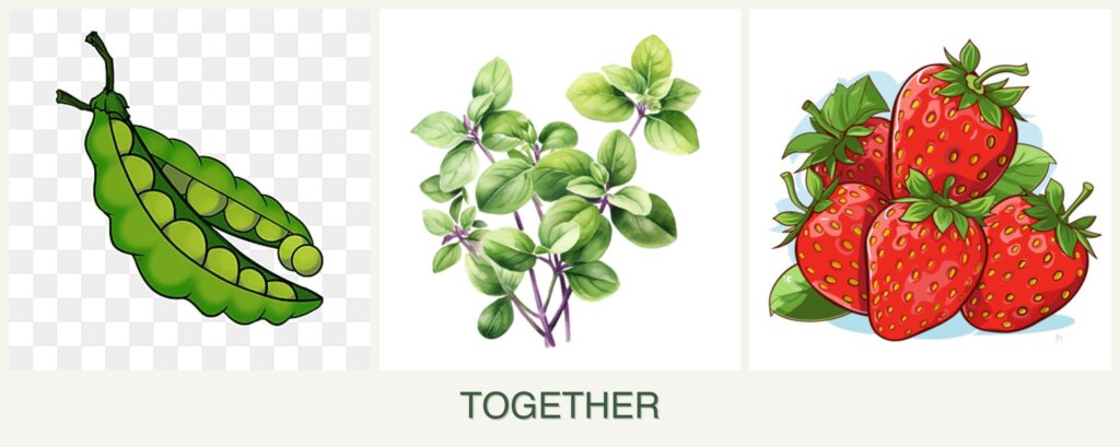 - Improved Growth: Peas fix nitrogen, enriching soil for strawberries and oregano.