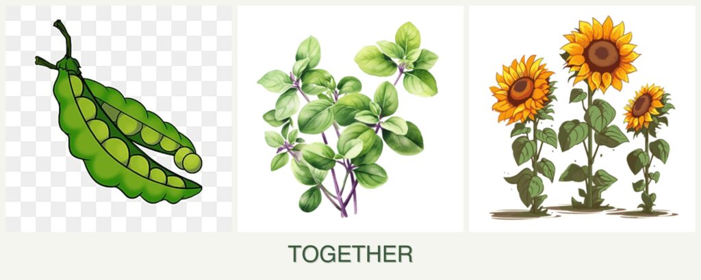Peas are nitrogen-fixing plants that enrich the soil, benefiting sunflowers and oregano. Sunflowers can provide a natural trellis for peas, while oregano acts as a pest deterrent. However, it’s essential to consider their spacing and sunlight needs to ensure all plants thrive.