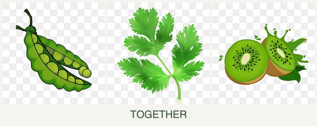 Growth Requirements: Peas and parsley thrive in cooler temperatures and have similar sunlight and soil needs. In contrast, kiwi requires a warm climate and ample space to grow, which can create competition for resources and space.