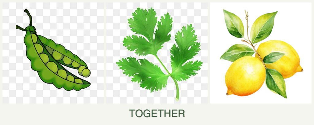 - Timing: Plant peas and parsley in early spring or fall; lemons should be planted in late winter or early spring.
