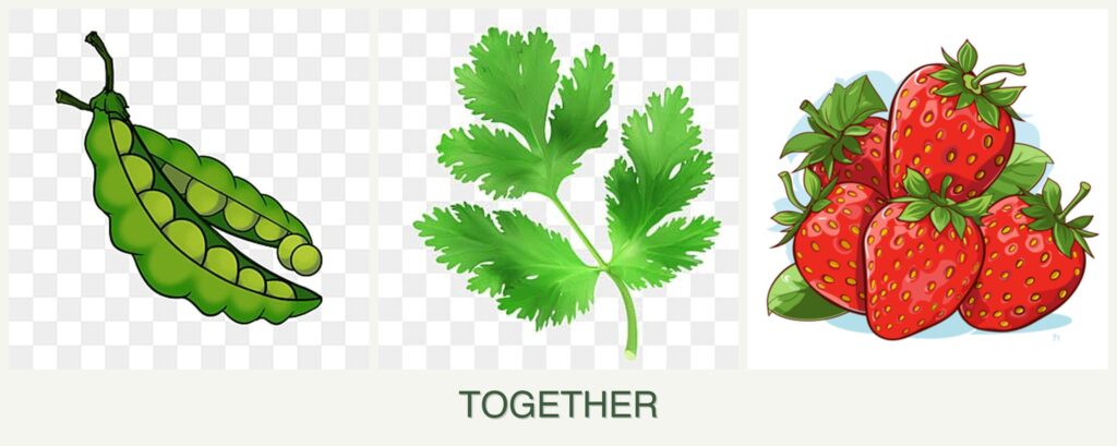 - Pollinator Attraction: The flowers of peas and strawberries can attract beneficial pollinators to the garden.