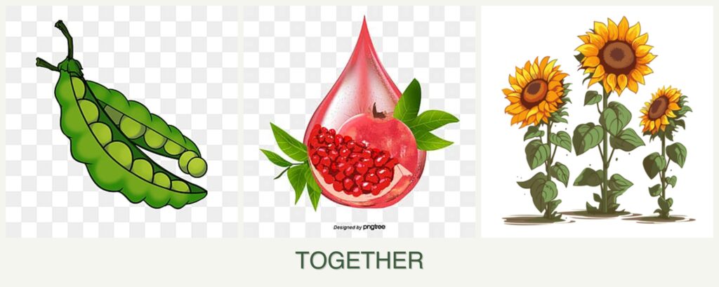 - Improved Growth: Peas’ nitrogen-fixing ability can enhance soil fertility, benefiting pomegranates and sunflowers.