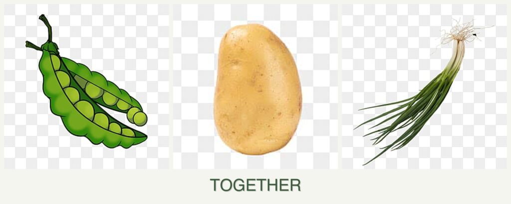 - Nutrient Needs: Peas add nitrogen to the soil, supporting potato growth.