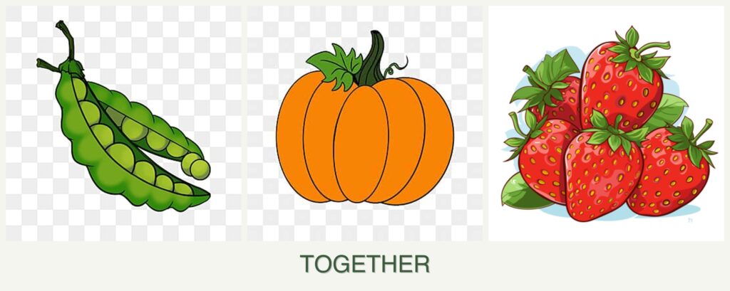 - Improved Growth: Peas enrich the soil with nitrogen, promoting pumpkin and strawberry growth.