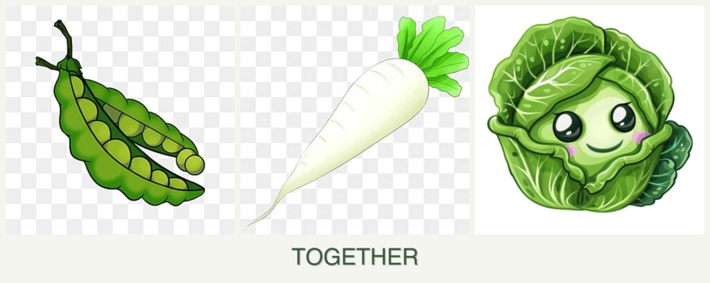 Planting peas, radishes, and cabbage together offers several advantages: