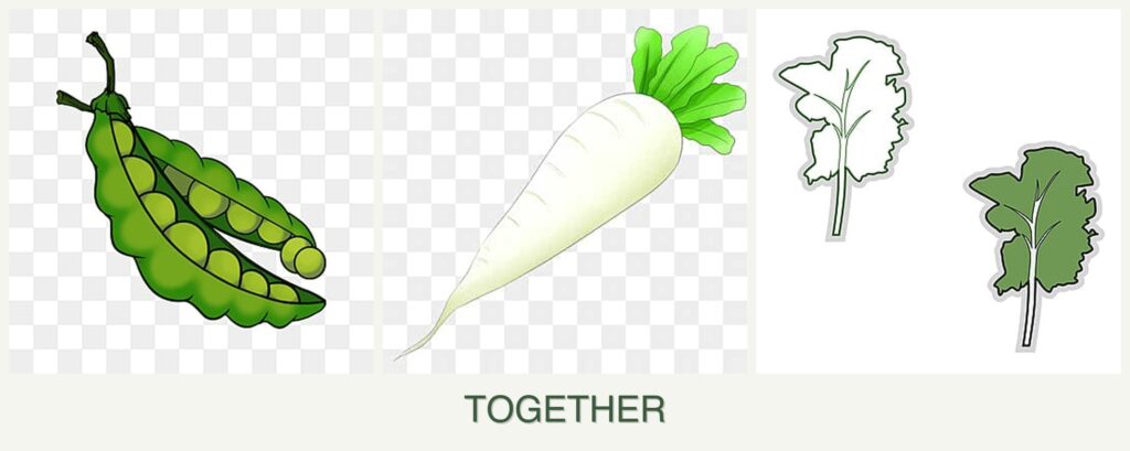 Can you plant peas, radishes and kale together?