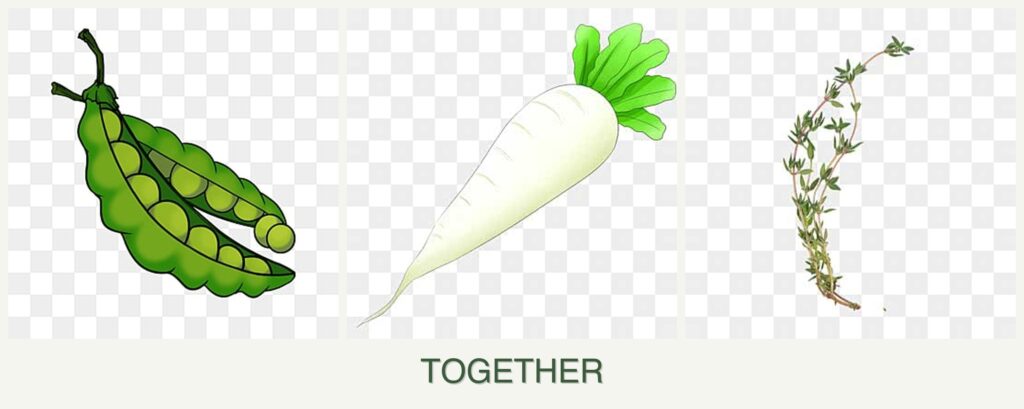 - Improved Growth: Peas enrich the soil with nitrogen, promoting better growth for radishes and thyme.