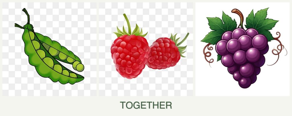 - Improved Growth: Peas fix nitrogen in the soil, which can benefit the nutrient needs of raspberries and grapes.
