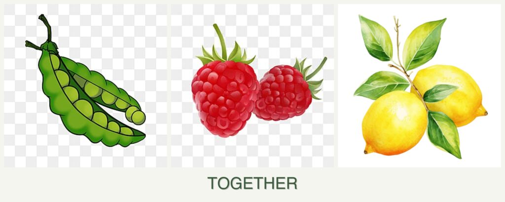 - Nutrient Needs: Peas are nitrogen-fixers, while raspberries and lemons have higher nutrient demands, which can lead to competition.