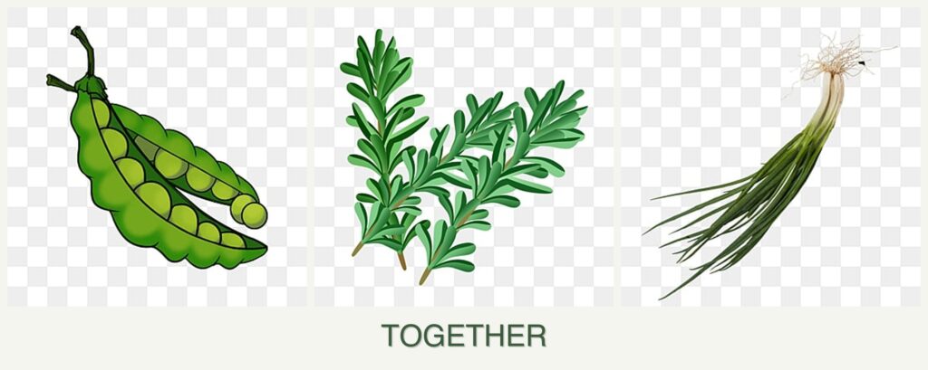 - Soil Health Benefits: Peas fix nitrogen in the soil, benefiting rosemary and chives, which can improve their growth and flavor.