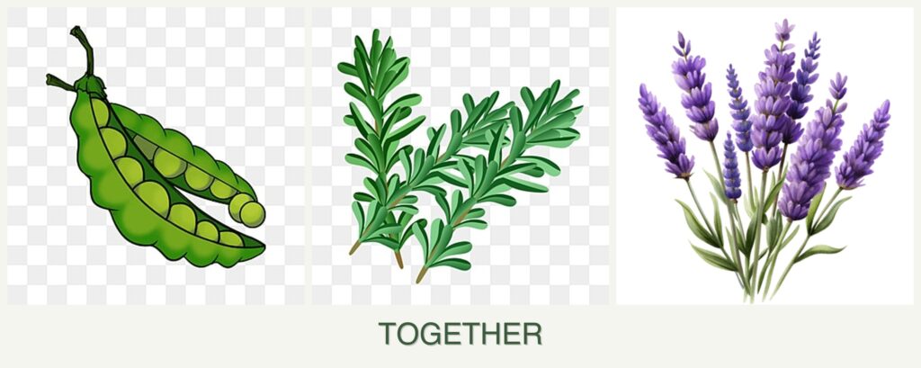 - Nutrient Needs: Peas are nitrogen-fixers, but rosemary and lavender do not benefit significantly from this.