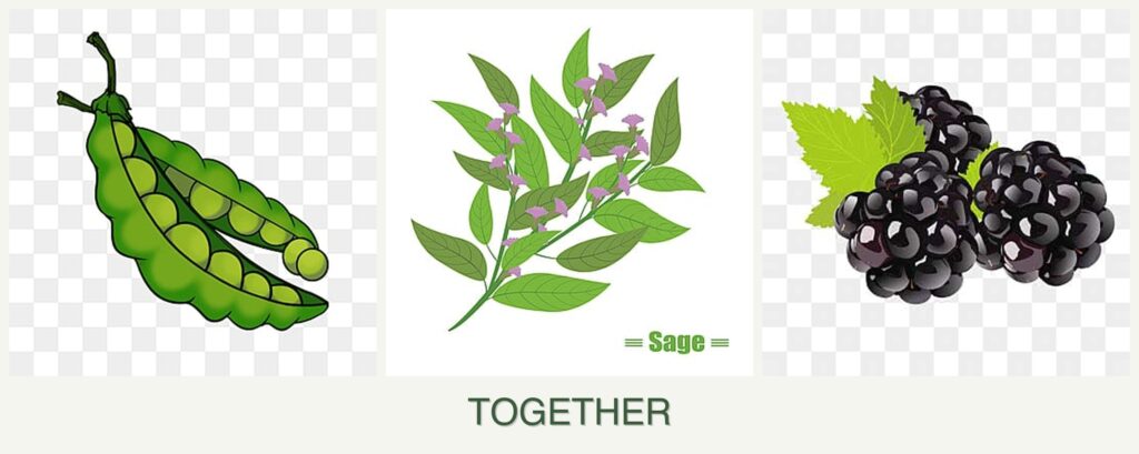 Improved Flavor and Growth: Sage can enhance the flavor of peas, while nitrogen-fixing peas support blackberry growth.
