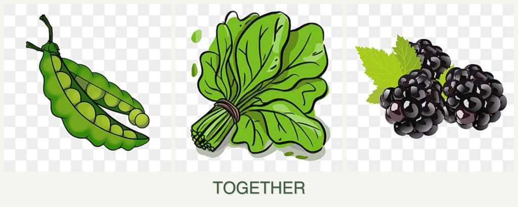 Planting peas, spinach, and blackberries together can offer several benefits: