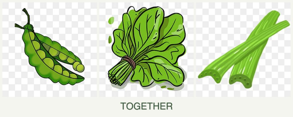 - Pest Control: Peas can attract beneficial insects that deter pests from spinach and celery.