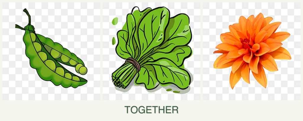 Nutrient Needs: Peas enrich the soil with nitrogen, which can be advantageous for spinach. Dahlias, however, may require additional fertilization.