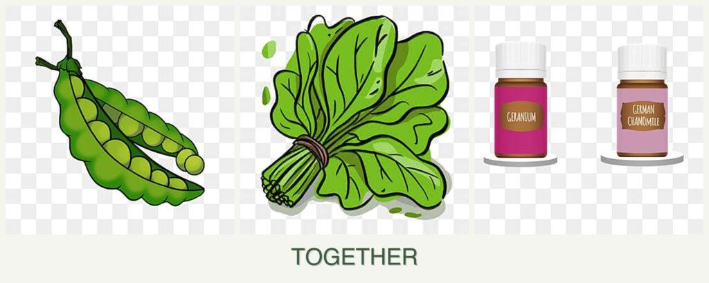 - Will geraniums affect the taste of peas or spinach? No, geraniums won’t affect the flavor of peas or spinach.