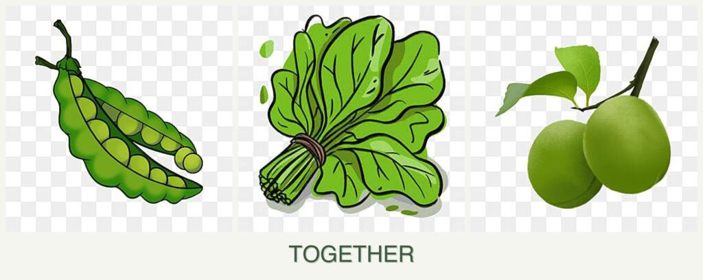 - Improved Flavor or Growth: The nitrogen-fixing ability of peas enriches the soil, promoting healthier growth for both spinach and plums.