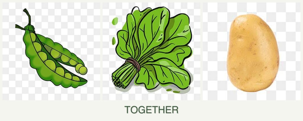 - Growth Requirements: Peas and spinach thrive in cooler temperatures, while potatoes prefer slightly warmer conditions. However, they can share the same space if planted at the right time.