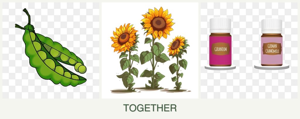 Improved Growth: Peas enrich the soil with nitrogen, benefiting sunflowers and geraniums.