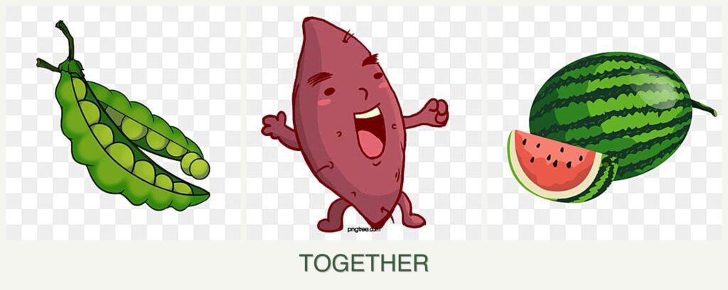 Planting peas, sweet potatoes, and melons together presents several challenges: