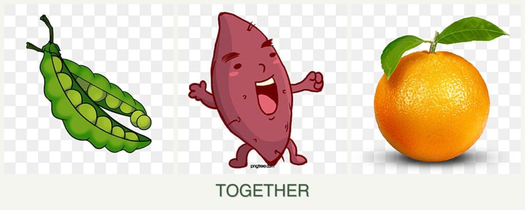 Can you plant peas, sweet potatoes and oranges together?