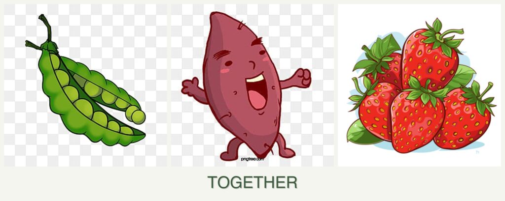 Can you plant peas, sweet potatoes and strawberries together?