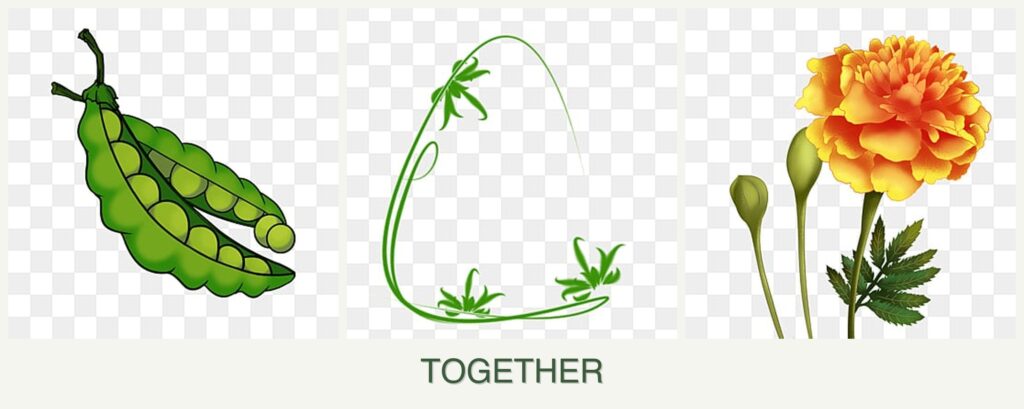 Nutrient Needs and Spacing: Peas are nitrogen-fixers, enriching the soil for tarragon and marigolds. Adequate spacing ensures each plant has room to grow without competing for resources.