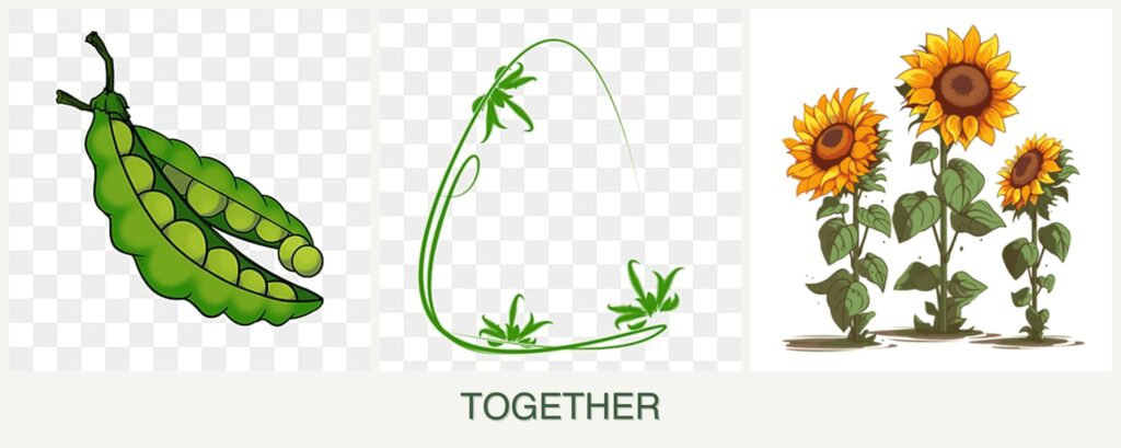 - Peas fix nitrogen in the soil, enriching it for sunflowers.