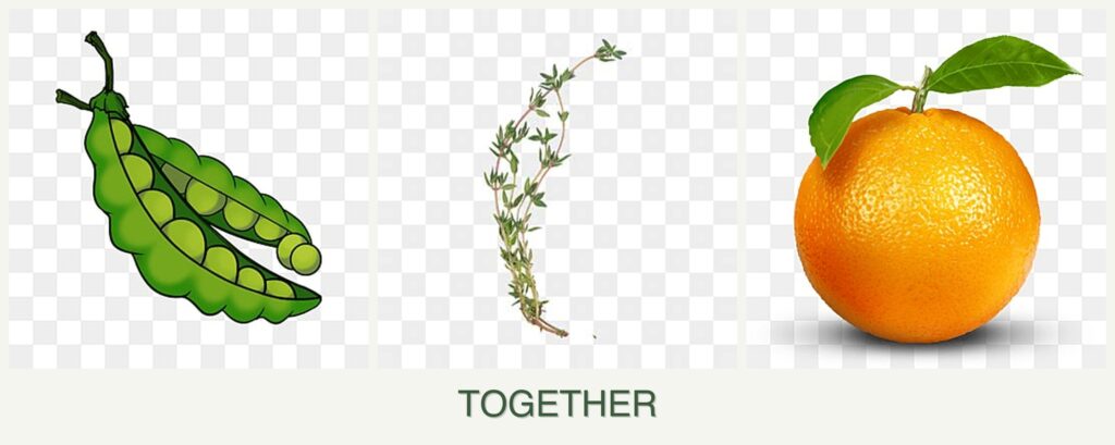 - Timing: Plant peas in early spring or fall, thyme in spring after frost, and oranges in late winter or early spring.