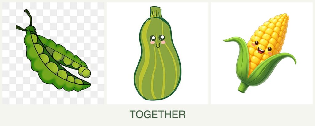 - Nutrient Needs: Peas fix nitrogen in the soil, which benefits corn and zucchini, both of which are heavy feeders.