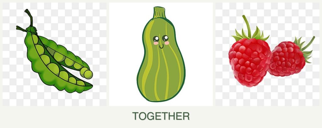 While planting peas, zucchini, and raspberries together isn’t ideal, each can be paired with other companions for mutual benefit: