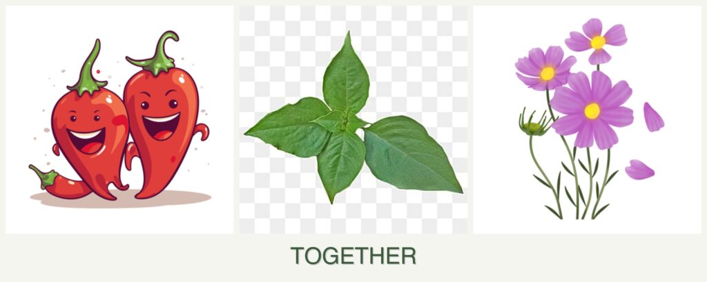 - Pest Control: Basil repels pests that affect peppers, and cosmos attracts beneficial insects.