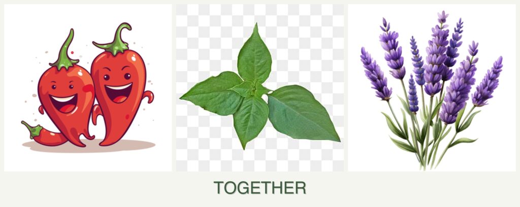 - Pest Control: Basil can repel pests like aphids and mosquitoes, benefiting peppers. Lavender attracts pollinators and deters some pests with its aromatic oils.