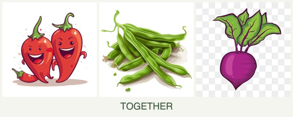 - Improved Growth: Beans’ nitrogen-fixing ability enriches the soil, promoting the growth of peppers and beets.