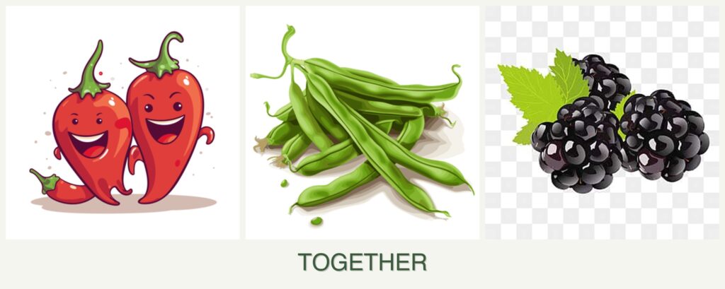 - Pest Control: Beans can deter certain pests that affect peppers, while blackberries attract pollinators.