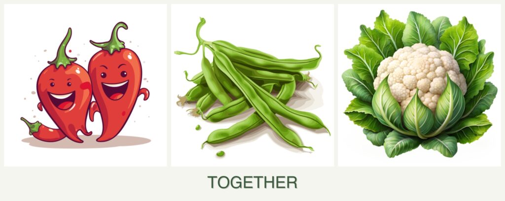 - Pest Control: Beans can deter beetles that might attack peppers, and cauliflower can benefit from the nitrogen fixed by beans.
