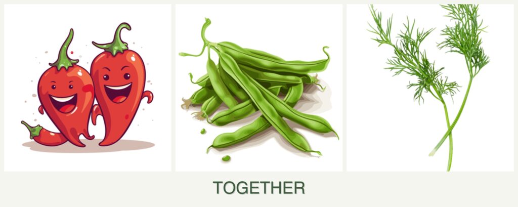 Planting peppers, beans, and dill together offers several advantages: