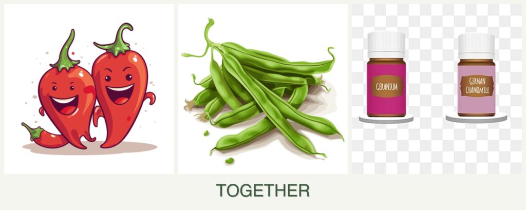 - Geraniums prefer similar conditions and can repel certain pests like Japanese beetles, which may harm beans and peppers.