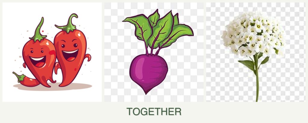 - Growth Requirements: Peppers, beets, and alyssum have different sunlight and watering needs but can coexist if managed properly.