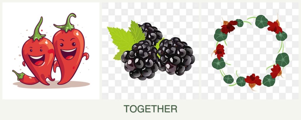 - Pest Control: Nasturtiums act as a trap crop for aphids, protecting peppers. Blackberries don’t have significant pest issues that affect peppers or nasturtiums.