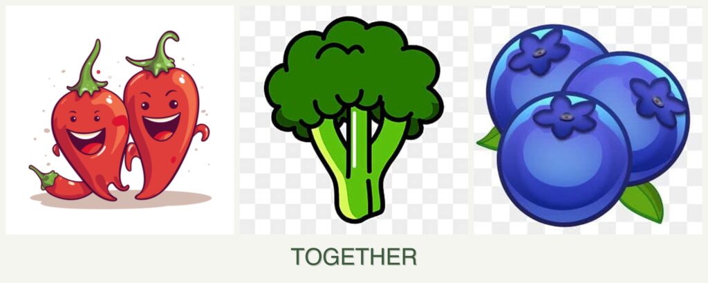 - Growth Requirements: Peppers and broccoli both need full sun and well-drained soil, while blueberries require acidic soil and partial shade.