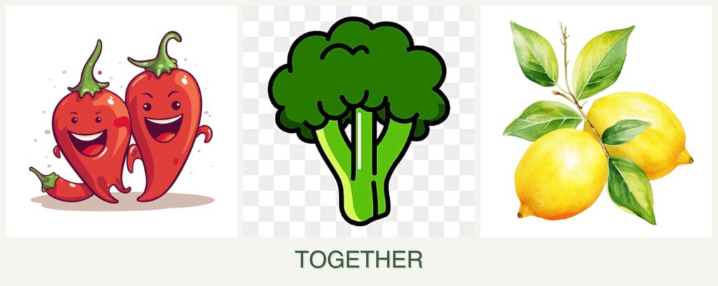 Growth Requirements: Peppers and broccoli have different temperature preferences; peppers thrive in warm weather, while broccoli prefers cooler conditions. Lemons, being citrus trees, require a subtropical to tropical climate, which doesn’t align with the cooler conditions broccoli favors.