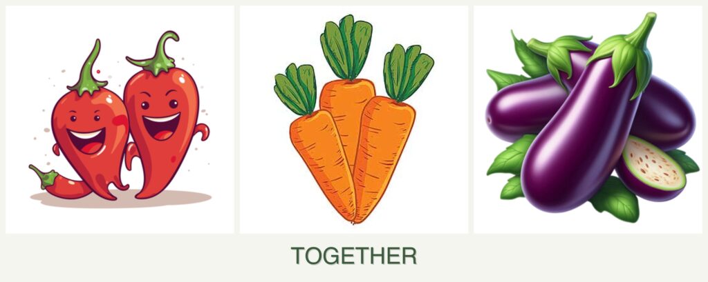 Nutrient Needs: Peppers and eggplants have similar nutrient requirements, while carrots have deep roots that can help break up the soil, improving nutrient absorption for all plants.