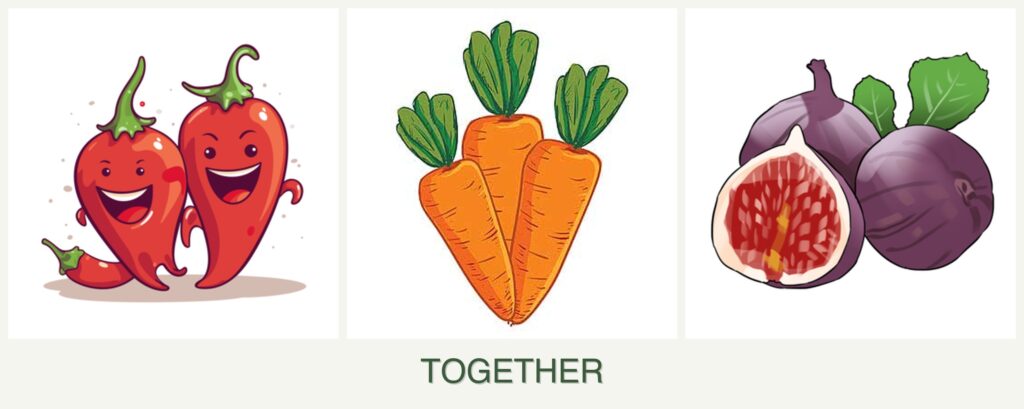 - Nutrient Needs: Peppers and carrots can share nutrients effectively, but figs may require additional fertilization to avoid depleting the soil.