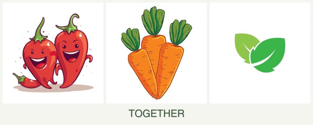 Peppers and Carrots: These two are generally compatible. Carrots grow underground, so they don’t compete much with peppers for sunlight or space. Peppers can benefit from the shade provided by the carrot foliage, which can help retain soil moisture.