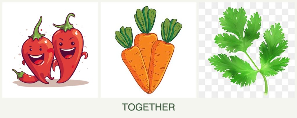 - Growth Requirements: Peppers and parsley have similar sunlight and soil needs, while carrots provide a natural ground cover, helping to retain soil moisture for the peppers.