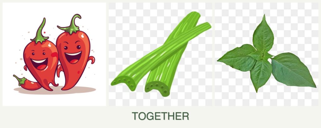 - Growth Requirements: Peppers and basil prefer full sun, while celery can tolerate partial shade.