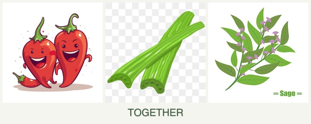 - Pest Control: Sage acts as a natural pest deterrent, repelling common pests that might otherwise target peppers and celery.