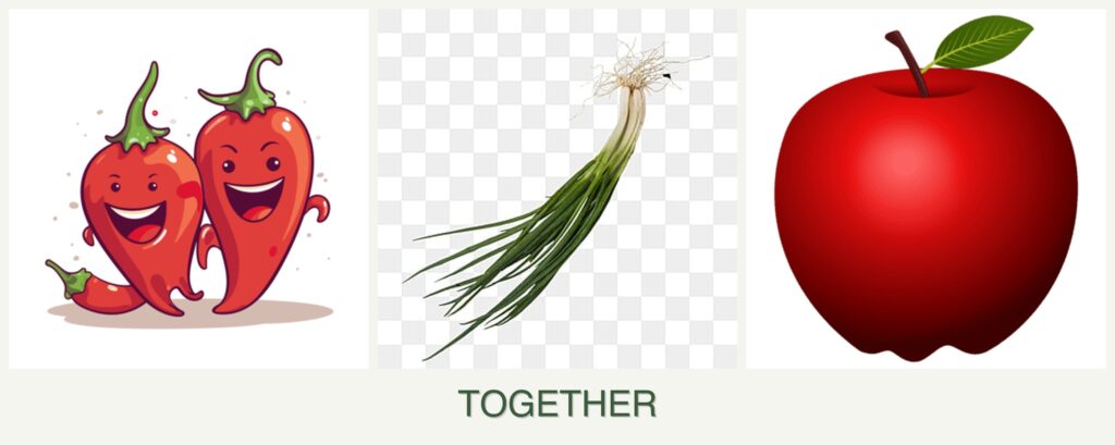 - Growth Requirements: Peppers and chives both thrive in full sun, whereas apple trees require more space and can provide partial shade.